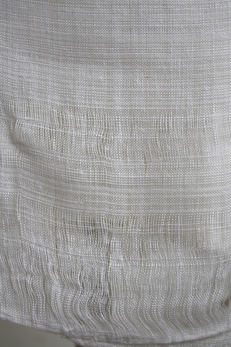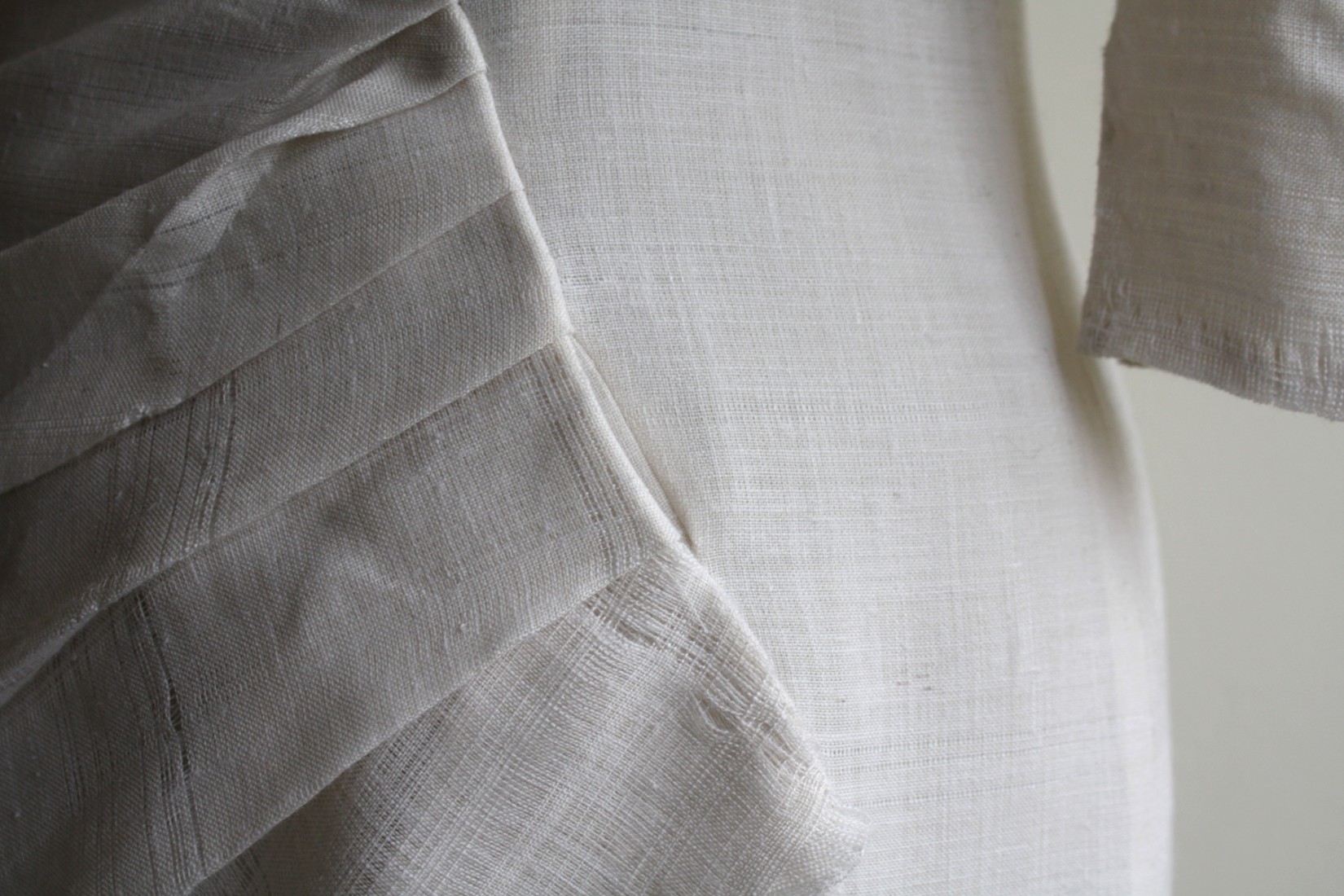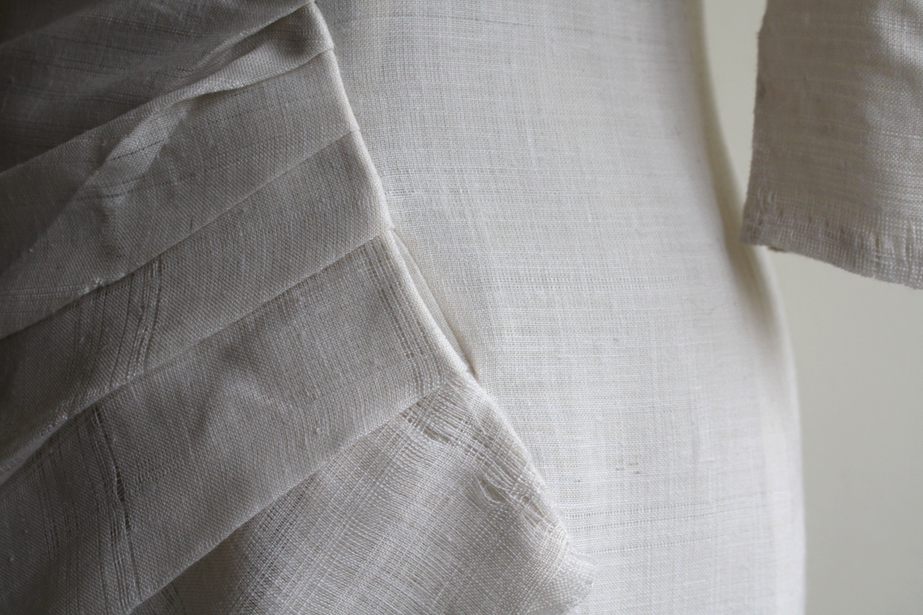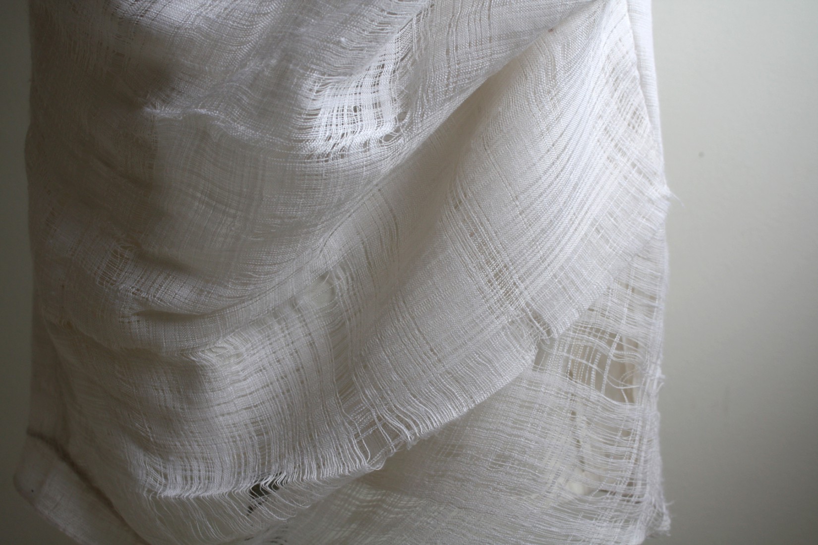 For the design I took their strength and fragility as a starting point. I chose a linen fabric and pulled out threads near the bottom of the dress. As a result the upper part appeared more solid in contrast to the loose and refined bottom of the dress. The film is part of an exhibition in the Kröller-Müller Museum in the Netherlands.