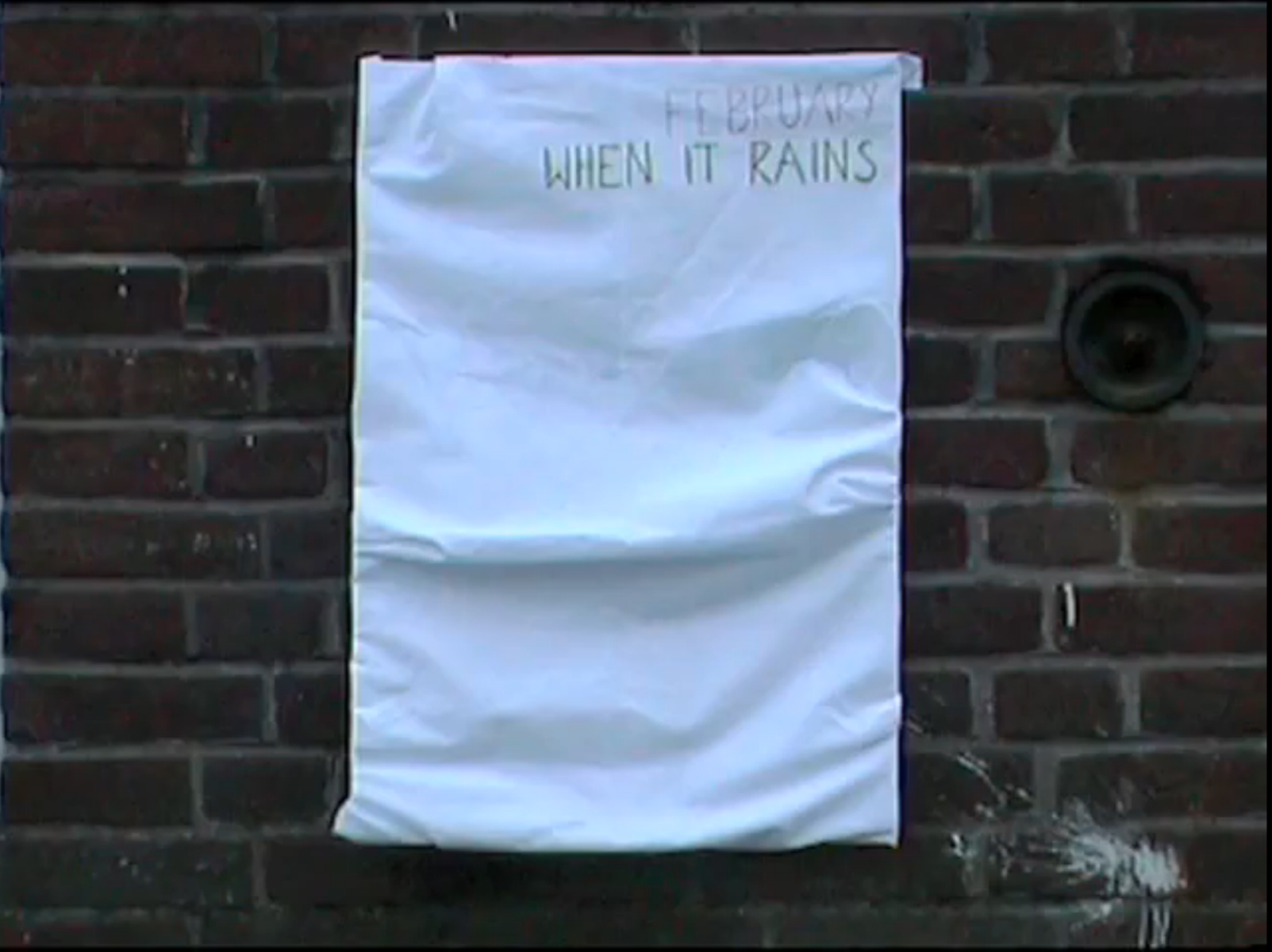 Rainproject. Poster with a cover of cloth. Text only becomes visible when it gets wet.